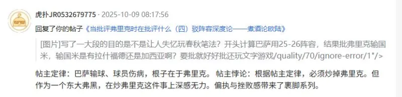 出球是巴薩的強(qiáng)項(xiàng),這樣對(duì)比不公平?!鞍退_是屢屢暴雷的垃圾后防?!?/p>