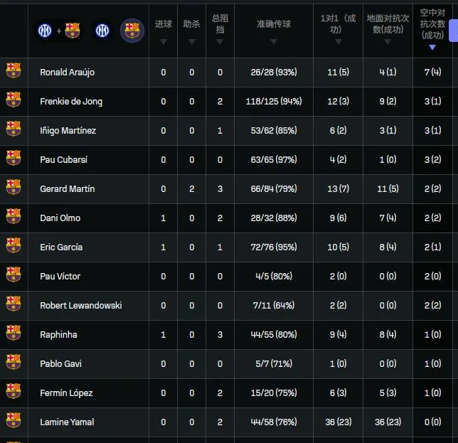 巴薩真的是后防沒(méi)人嗎?這是對(duì)國(guó)米的首回合數(shù)據(jù)。