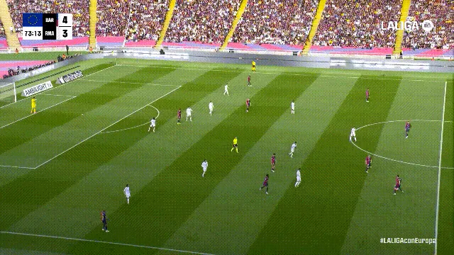74分鐘亞馬爾假跑反騙身后埃里克加西亞直塞亞馬爾外腳背拉菲錯(cuò)失空門(mén)