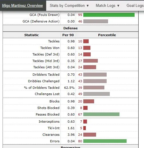 伊尼戈不是什么指揮官。這場(chǎng)4比3的國(guó)家德比他就有至少兩三次在最后一個(gè)人位置拖住越位線,因?yàn)樽约核俣嚷麚?dān)心回追跟不上。他的防守?cái)?shù)據(jù)很不好,在場(chǎng)時(shí)甚至是負(fù)影響凈勝球,防守不是因?yàn)橐聊岣曜咦儾?,而是他在的時(shí)候就很差。只是24年底、25年沖刺階段的事因?yàn)槁?lián)賽冠軍一筆勾銷而已。