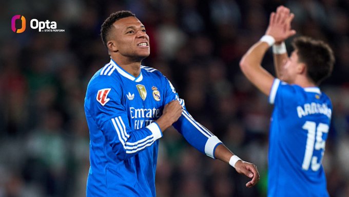 賽前Opta數(shù)據(jù)統(tǒng)計,得進皇家馬德里最近兩場西甲都未能取勝(2場平局),球為其本而姆巴佩在這兩場比賽中也都沒有進球。賽季